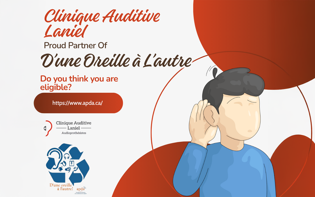 We are proud to announce our partnership with the D’une Oreille à l’Autre (From One Ear to the Other) program, an initiative by the APDA (Association des personnes avec une déficience de l’audition – Association for People with a Hearing Impairment) which aims to make hearing accessible to everyone. This collaboration allows us to extend our commitment to the community by offering our services to those who need them most.